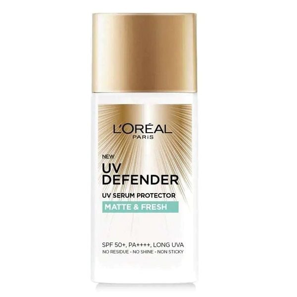 UV Defender SPF50+ PA++++ là dòng sản phẩm chống nắng da mặt đến từ thương hiệu L’Oreal của Pháp, với sự kết hợp hoàn hảo của công nghệ chống nắng bền bỉ tối đa và thành phần vàng bảo vệ da, dưỡng sáng, hỗ trợ mờ thâm nám. Chống nắng L’Oreal được trang bị 2 lớp màng bảo vệ: Màng lọc Mexoryl SX và Mexoryl XL giúp cản tia UVA và UVB tối ưu suốt cả ngày dài, hỗ trợ ngăn ngừa da lão hoá lên đến 5 năm.