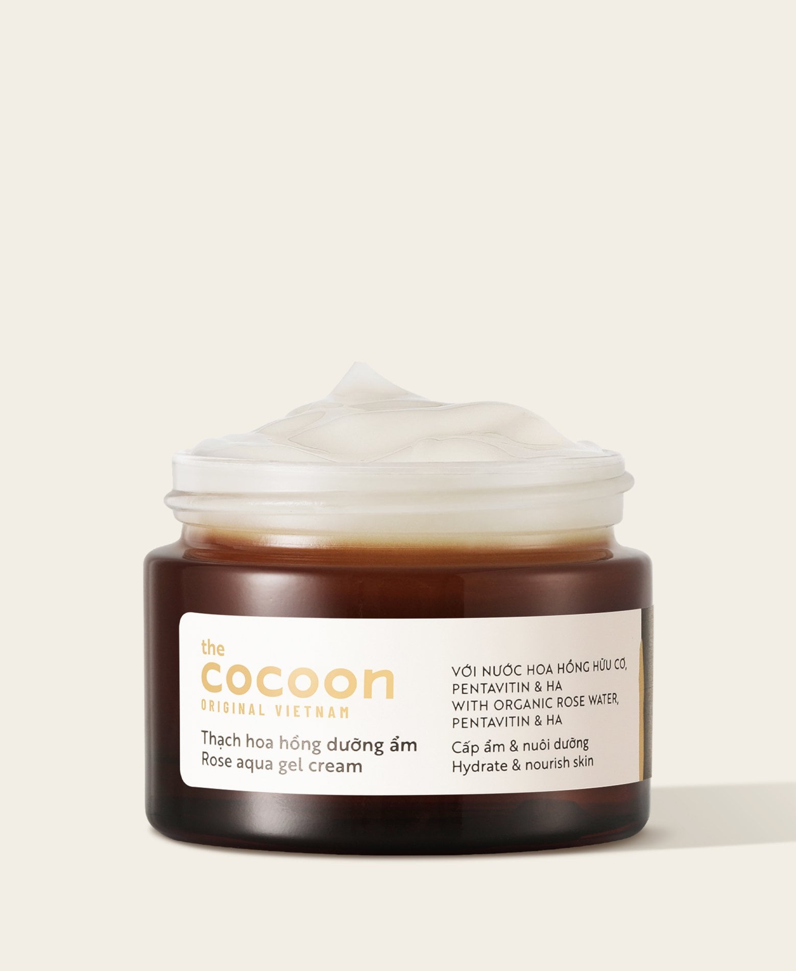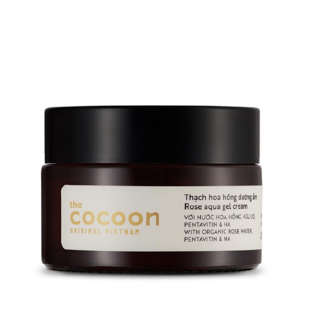 Thạch hoa hồng dưỡng ẩm cocoon 30ml (rose aqua gel cream) Với kết cấu mọng nước mang nhiều dưỡng chất từ nước hoa hồng hữu cơ với nam châm dưỡng ẩm Pentavitin, các axit amin và HA, thạch hoa hồng sẽ nuôi dưỡng và khóa ẩm suốt 24 giờ, mang lại làn da đầy đặn, mềm mượt và mịn màng.