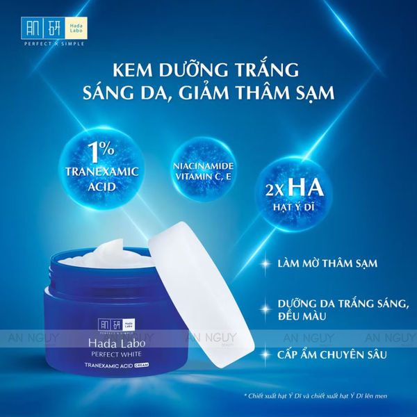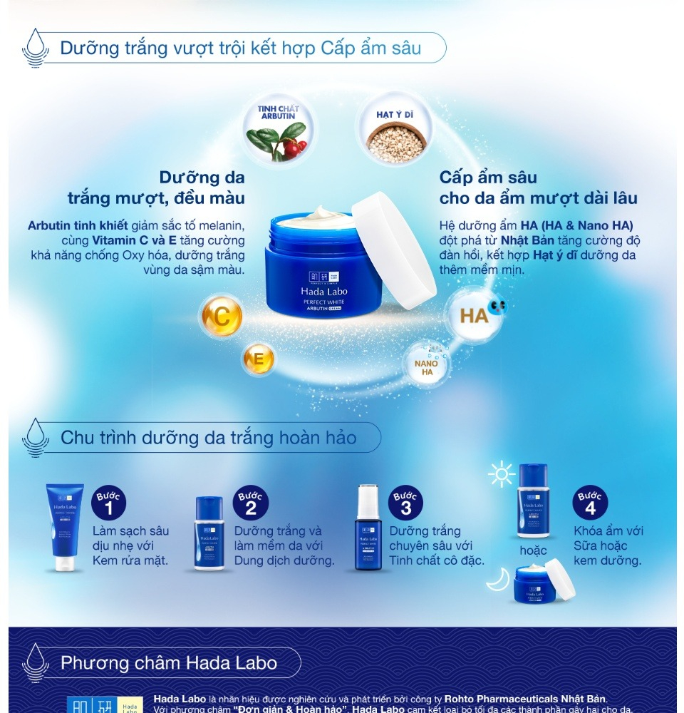 * Nên dùng kết hợp kem dưỡng trắng dạng gel Hada Labo với bộ sản phẩm Perfect White Tranexamic Acid để đạt hiệu quả tối ưu.