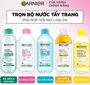 - Nước Tẩy Trang Garnier Micellar Oil Infused Cleansing Water: dành cho da trang điểm, giúp làm sạch sâu da.