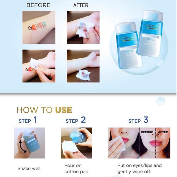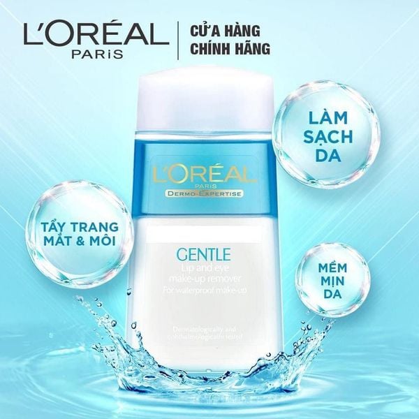 Nước Tẩy Trang Mắt Môi Loreal Gentle Lip & Eye Make-up Remover 125ml giúp cuốn trôi bụi bẩn và lớp trang điểm một cách nhẹ nhàng nhờ công thức dịu nhẹ cùng các thành phần lành tính, mang đến làn da thông thoáng, mịn màng.